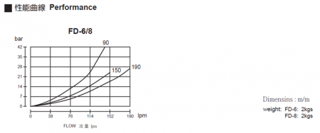 | Model Number | Operating Pressure (kgf/cm²) | Flow range (L/min) | Weight (kgs) |
