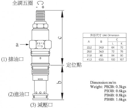 | PB2B | Pilot operated reduing cartridge | 3 ports | 40 | T11A |