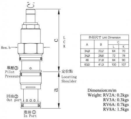 | RV2A | Pilot operated, balanced piston, ventable | 3 ports | 60 | T11A |